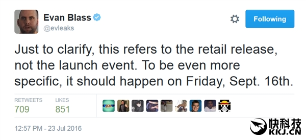 现在,爆料大神@evleaks给出的最新消息,iPhone 7正式开卖时间是9月16日(全球首批发售国家和地区),不管备货有多少苹果都不愿意把它的发售时间推迟两个星期