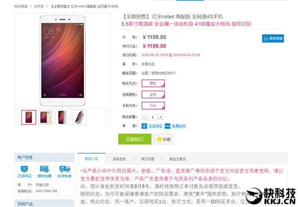 同时在另一个线上发售平台移动网上商城,依然是货源充足,不过方式是全额预售,预计首批到货时间是9月5号