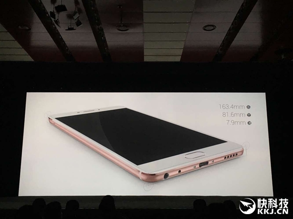 手机三围尺寸163.4*81.6*7.94 mm,实际尺寸,跟100元人民币一样大。可以轻松放进西装衬衣口袋里,女生拿也不大。
