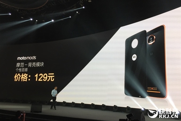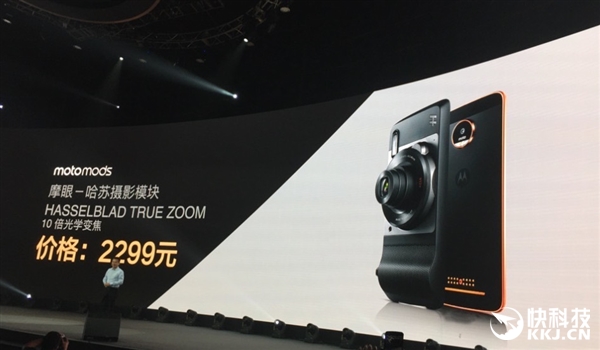 此外,一同发布的还有5款模块化配件,包括哈苏摄影模块(2299元)、JBL扬声器模块(699元)、投影模块(1999元)、电池模块(499元)、背壳模块(129元)。其中,Moto Z手机+电池模块套装4399元,可额外增加2,220mAh电池容量。