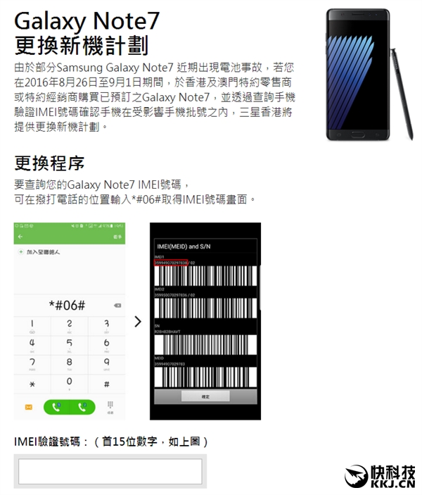 为了消除用户的顾虑,三星官方上线了IMEI检查工具,用户输入后即可核对你手中的Note 7是否在本次召回之列
