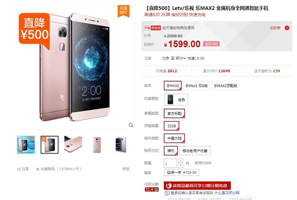 1599元骁龙820+4G!乐视乐Max 2现货大促
