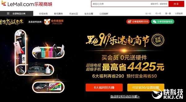 乐视开展“黑色919”乐迷电商节活动,手机、电视纷纷赠优惠券、送红包。更狠的是,骁龙820+4GB内存的乐Max2直降500元,售价仅1599元起,堪称残暴。