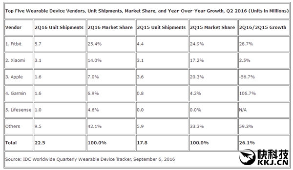 iPhone 7发布前 小米超苹果成全球第二可穿戴设备商
