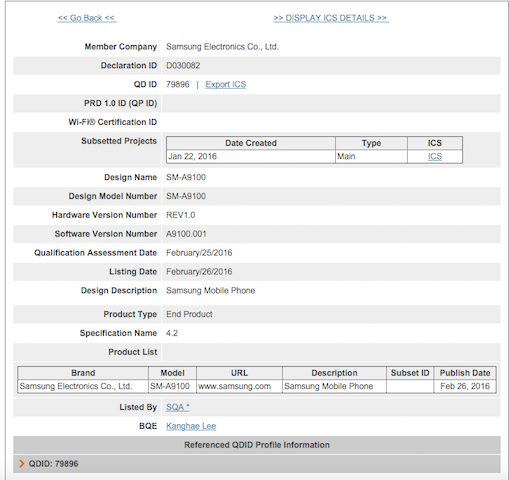 三星已经开始研发Galaxy A9 Pro(SM-A9100)智能手机。现在看来,该公司正在加速Galaxy A9 Pro研发过程,希望它可以早日上市。我们发现,Galaxy A9 Pro已经出现在蓝牙SIG网站上,显示它已经通过蓝牙技术联盟相关认证,这无疑表明A9 Pro将很快上市销售。