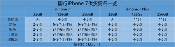 从我们汇总的表格来看,截止发稿时iPhone 7银色和金色128/256GB版依然有现货,部分地区可以在9月16日首发当天送到。