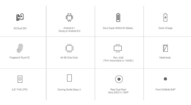 在配置方面,该款Ulefone Power使用了一块5.5英寸的1920x1080像素分辨率屏幕,搭载联发科MT6753八核处理器,内置3GB运行内存和16GB本地存储空间,采用前置500万+后置1300万(索尼IMX 214)像素的摄像头组合,配有6050mAh容量电池,支持指纹识别和快速充电功能,预装安卓5.1系统。