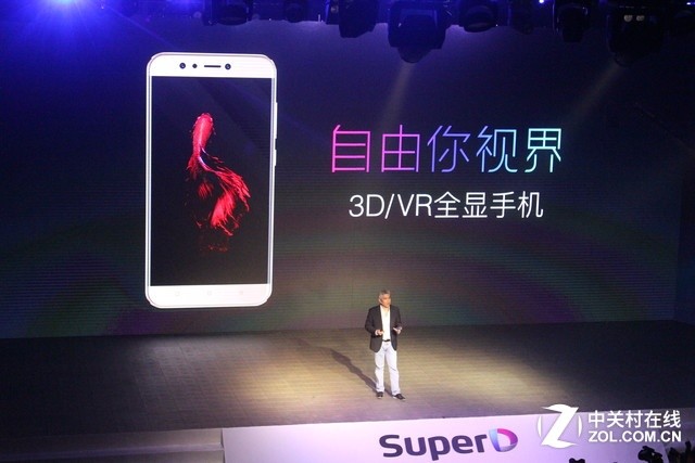 SuperD D1是一款支持3D/VR全显手机,在竖屏状态下为2D显示,横评的时候是2D到3D的显示效果,插入VR里可以和VR相结合,观看立体的显示效果,“一屏、双芯、三摄”也是SuperD D1的功能特点。