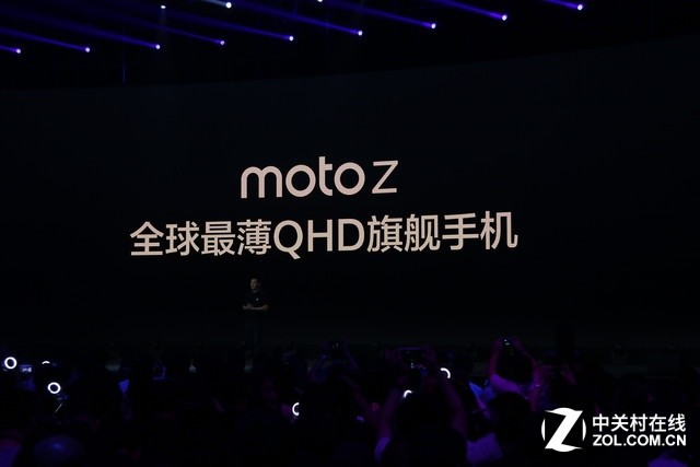 在回顾了摩托罗拉的辉煌历史后,Moto Z正式发布。这款产品采用美铝航空级金属中框,机身厚度只有5.2mm,刀锋设计。配备了一块5.5英寸2K分辨率AMOLED屏幕,ppi高达540。性能方面使用目前性能最强劲的骁龙820芯片,4GB RAM+64GB ROM,最高可拓展至2TB存储空间。