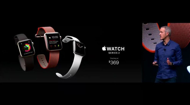 接下来今天的第一款硬件产品Apple Watch2亮相,新款搭载了Watch OS3.0系统,在中文、运动统计环也进行了优化,还支持50米深度防水,采用双核处理器,年度也提升了一倍。加入了GPS模块,还提供了不锈钢、陶瓷、爱马仕定制款,还推出了Nike Plus款。将会在9月16日上市价格为269美元。