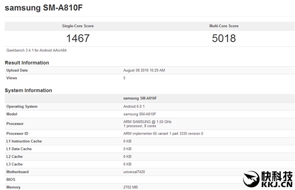 根据此前GeekBench的跑分,A8搭载了的是Exynos 7420处理器,四核A57 2.1GHz、四核A53 1.5GHz CPU,同时整合Mali-T760 MP8 GPU,单核心1467、多核心5018,它在性能上已经达到了三星去年旗舰机的水准,相较上一代骁龙615可谓巨大提升。