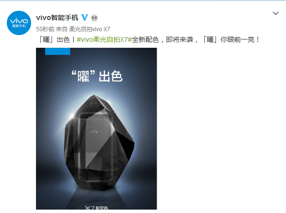vivo X7新配色或是亮黑色(图片引自新浪微博)