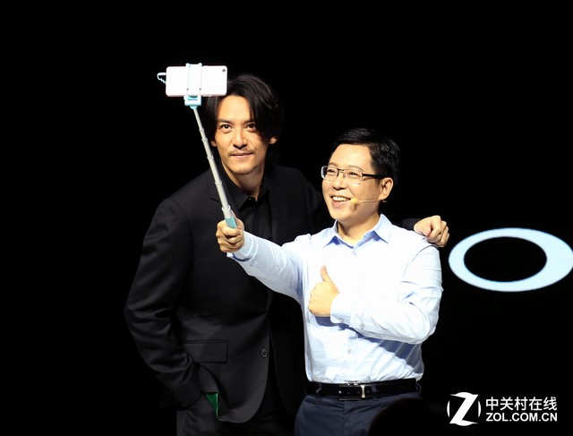 OPPO副总裁吴强使用OPPO手机与张震合影