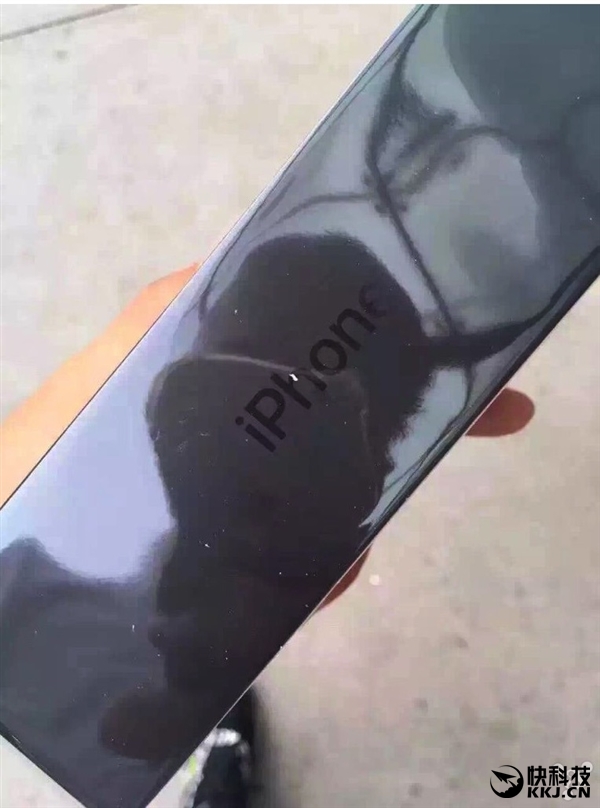 亮黑色版本依然是iPhone 7背部照被放在包装盒封面,但包装盒是全黑色,而盒子的右侧依然是有“iPhone”字样。
