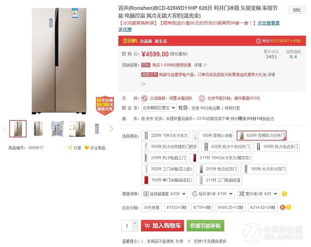 编辑点评:这款容声风冷对开门冰箱,拥有高颜值,可以为家中填上一抹金色,提升生活品质。超大的容量收揽海量食材,风冷无霜,锁住果蔬水分和营养,保持肉类新鲜口感,双风道风冷技术带来强劲动力,制冷快,节能静音,综合实力出众,目前京东团购售价4599元,性价比十足,需要的朋友不要错过!