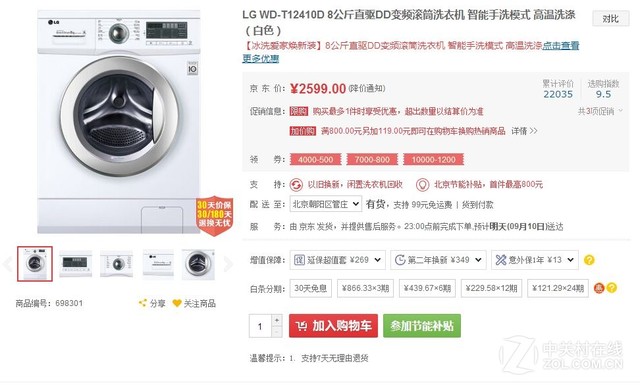 编辑点评:这款LG滚筒洗衣机,拥有时尚的外观,足够大的容量,6种智能洗涤方式和先进的DD变频电机,众多技术汇集一身,性能强悍,能够让生活更加的智能和方便。现在京东售价2599元,而且还有京东卷可以领,拥有很高的性价比,“机”不可失,喜欢的朋友不要错过!