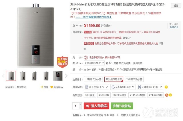 编辑点评:这款海尔燃气热水器外观时尚。双截止比例阀风应用保证恒温能力,蓝色火苗技术保证了燃气的充分燃烧。56重安防技术,用心呵护安全。目前京东商城促销价仅为1599元,以旧换新能抵100元,整机6年质保,优惠多多,喜欢这款热水器的朋友赶快行动起来吧!