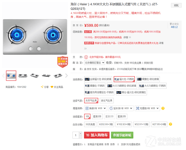 编辑点评:这款海尔燃气灶,拥有美观时尚的造型设计,百搭各种厨房家居,坚固耐用、易于清洁,强劲的火力,带来极佳的烹饪体验,还有安全的防护以及便捷的操控,是一款综合性能出众的产品,推荐选购。京东商城家装节599元,性价比突出,喜欢的朋友赶快行动起来吧!