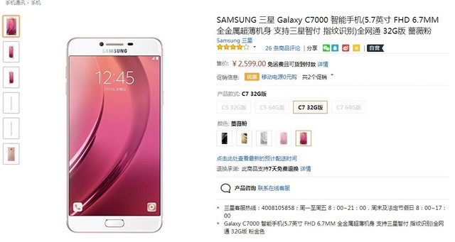 有的小伙伴还是非常喜欢三星手机,其实在中价位的三星C7手机已经在相关功能和体验上非常接近旗舰手机了,而且这款手机非常轻薄,笔者感觉这款手机的手感非常棒,因为纤细啊同时对于学生朋友来说5.7英寸大屏可以直接用来看电子教课书等,确实对阅读体验有非常好的反馈。还有就是支持SAMSUNG Pay,对于现在移动支付来说是非常方便。
