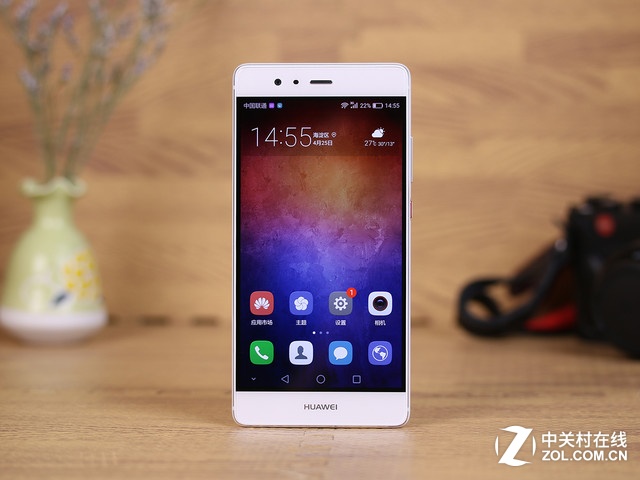华为P9正面采用了类似ID无边框的设计,屏幕屏占比较高。华为P9采用轻薄化设计,机身厚度仅为6.95毫米,单手握持还是比较舒适。华为P9正面采用5.2英寸2.5D弧面屏,分辨率为1920x1080像素的FHD级别,显示效果不错。核心方面内置海思Kirin 955八核处理器,以及3GB/4GB RAM+32GB/64GB ROM的内存组合,搭载基于Android 6.0内核的EMUI 4.1系统,同时内置3000mAh的电池,支持快充技术。机身背部设有1200万像素莱卡双摄像头,双索尼IMX286传感器,一颗负责RGB,一颗负责单色双感应器,像素达到1.25μm;及其对应的前置镜头达800万像素。