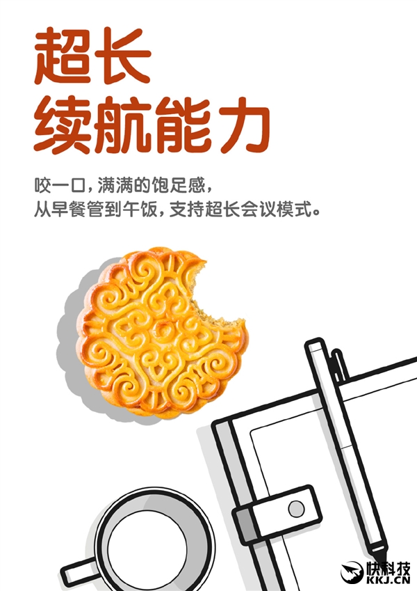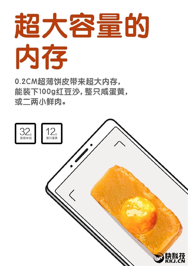 在配图中,小米用上了“一体化饼皮新工艺”、“旗舰机口感内芯”、“超大容量的内存”、“超长续航能力”等。