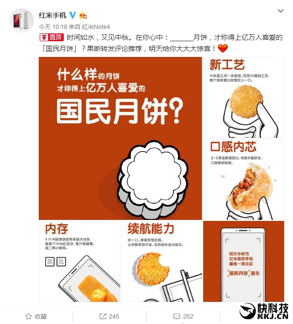 今天上午,小米通过红米手机官方微博发起了“国民月饼”活动,并宣称“明天给你大大大惊喜”。