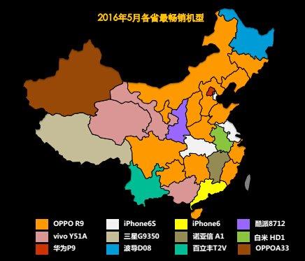 在“中国移动终端大数据”报告中,在区域最“强势”品牌机型——各地区最畅销机型统计中,蓝绿两兄弟的产品,霸占了除北上广和江苏、安徽、江西、湖北、陕西和西藏以外的所有省份,这基本上符合了原来刀客的推测,在经济和信息发达区域,是蓝绿两兄弟销量的硬伤。