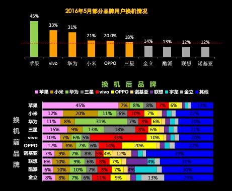 ▲部分品牌用户换机情况
