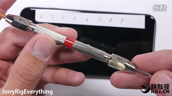 从测试视频来看,该网友使用了钥匙、刀具以及专用测试工具对iPhone 7进行了考验。