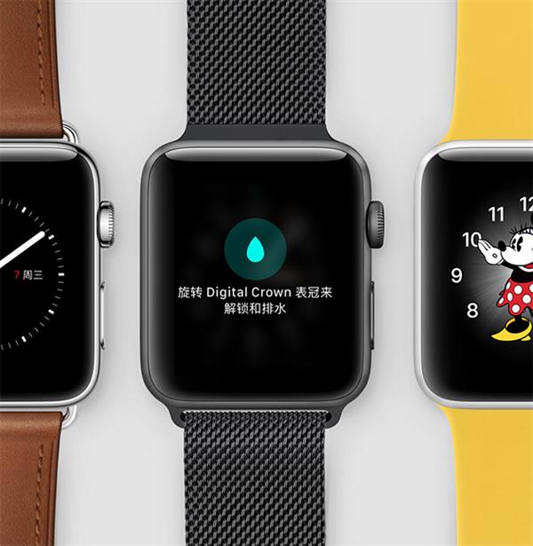 发布会上推了两款手机,一款手表;前者防水等级是IP67,和上一代手表相同,生活中应付一般下雨或者洗手沾水都没问题。Apple Watch Series 2手表的防水等级向前了一大步——50米深度防水,顺带解锁了新使用场景——游泳池和海滩。