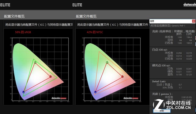 屏幕方面,该机搭载了一块15.6英寸的雾面防眩光屏幕,分辨率为1920×1080。通过软件Spyder5测试可以看出,该屏幕色域达到了58%的sRGB、42%的NTSC,整体色彩漂移处在可接受的范围内,应对日常使用完全足够。