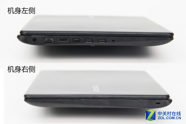 三星是一家紧握时尚电子消费品脉搏的企业,经常可以抓住工业设计的精髓理念。Notebook 3黑色款曲线饱满,设计语言简洁,虽然机身略大,但由于过渡曲线恰到好处的运用,使整机显得比较轻盈。其曲线的运用在侧面更为明显,由后方向前逐渐收窄,整个收窄过程流畅自然,在整体设计上确实不错。