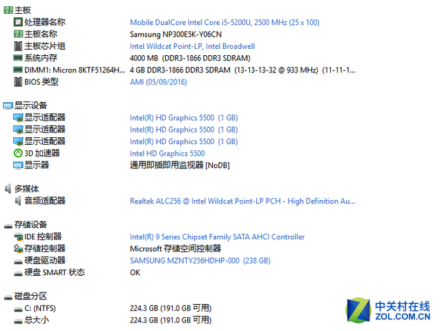 Notebook 3配置了英特尔酷睿i5-5200U处理器,4G DDR3-1866内存,硬盘方面该机配备了256GB的SSD固态硬盘(拥有机械硬盘位),显卡方面则是采用英特尔核心显卡HD 5500和NVIDIA Geforce 910M(2GB显存)组合。下面通过详细测试来看看整机的实际性能表现。