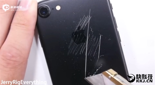 如果用钥匙之类的坚硬物体去划iPhone 7黑色版本时,两者都会出现损害,亮黑色损伤更严重。