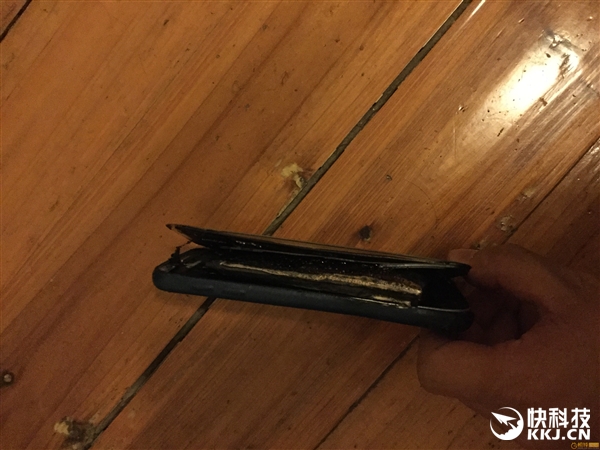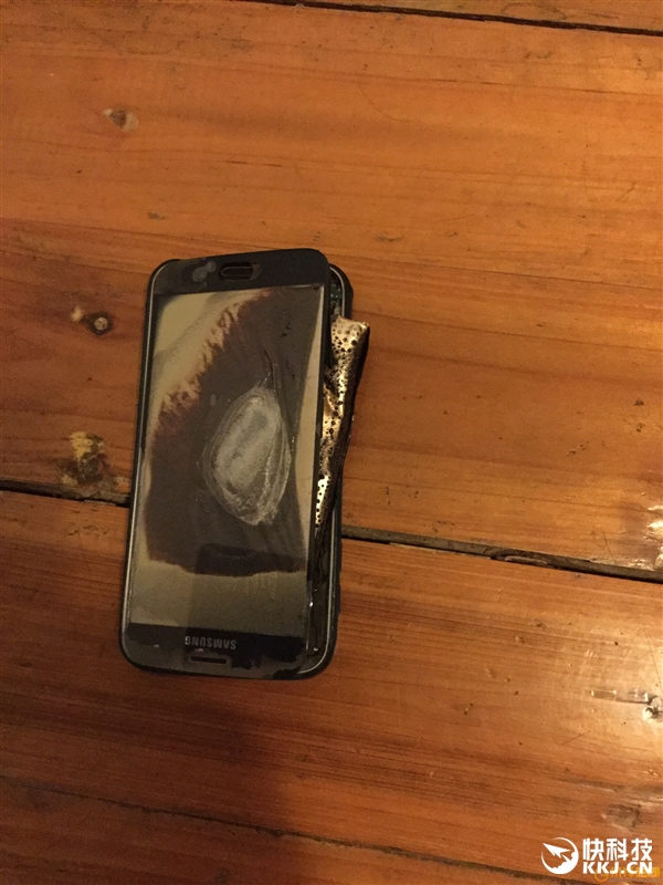 从照片上看,这部S6已经完全开裂,内部电池也突了出来,到处都是烧焦的痕迹。