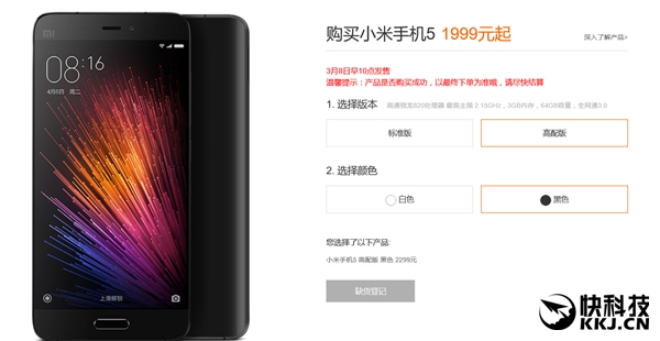 从小米官网提供的信息来看,3月8日早10点将迎来第二轮小米5发售,无需预约,可直接购买,但不出意外的话,依然要拼手速。