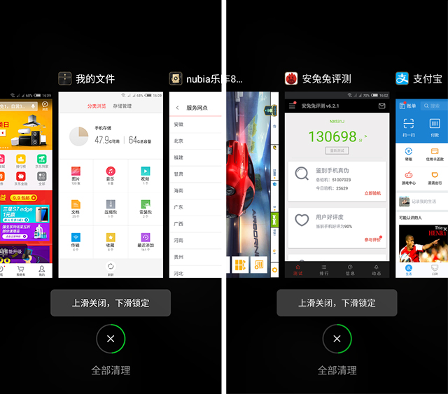 至于超级截图、应用分身、随心分屏,nubia Z11黑金版也得到了延续,同时还支持指纹支付(微信和支付宝),手机的功能更加丰富。可以说,其它手机有的,努比亚不仅有了,而且还得到了优化,比如“随心分屏”。它的体验确实非常方便。手指沿着屏幕底部向上轻轻一滑,即可一分为二。不过,分屏功能的实用性,个人觉得还是值得讨论的。