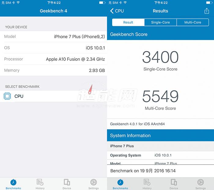 iPhone 7 Plus和iPhone 7跑分成绩是基本一样的