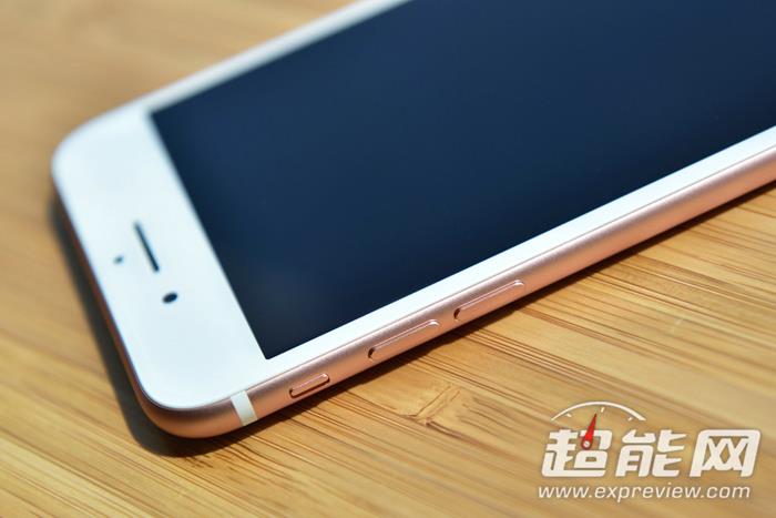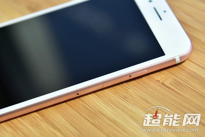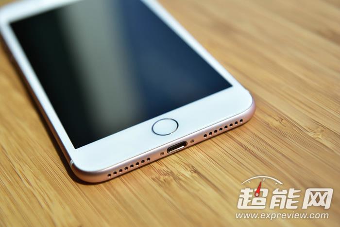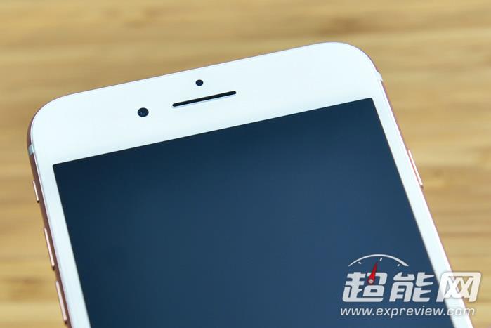 由于这次我们手上这台iPhone 7 Plus为玫瑰金配色,所以在正面和iPhone 6s Plus几乎是一模一样的,屏占比感人,白色面板的顶部不是今年国产厂商爱用的对称式设计。