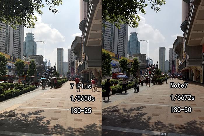 户外阳光充足情况下,两者都能拍出很清晰、干净的照片,iPhone 7 Plus对色彩的还原更准确,显得平淡,而Galaxy Note7的色彩则更讨好眼球,有种闪亮、锐利的感觉。