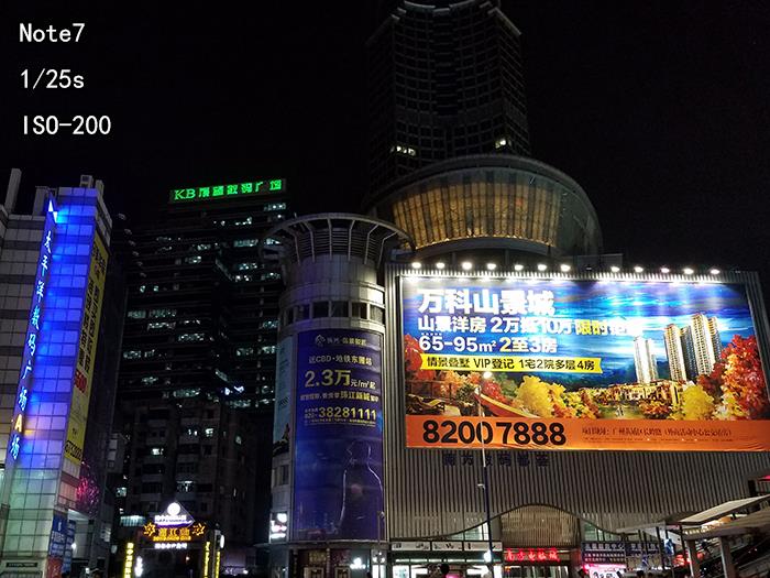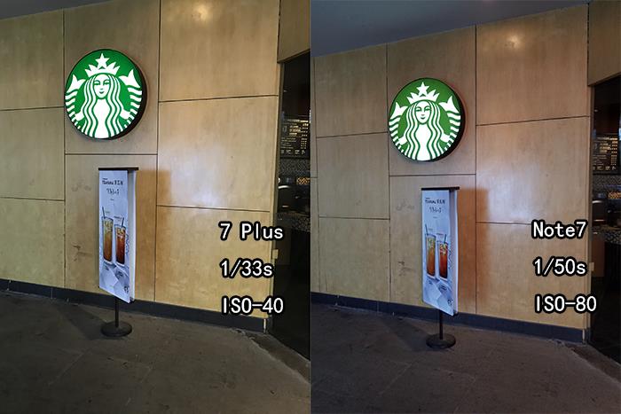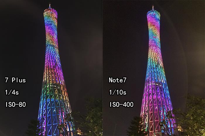 夜景方面,两者画面都很亮,Galaxy Note7的Dual Pixel突显出优势,画面更亮,对焦速度几乎和白天一样快,iPhone 7 Plus则有明显的对焦、快门变慢,好在最终出来的照片是成功拍到的。