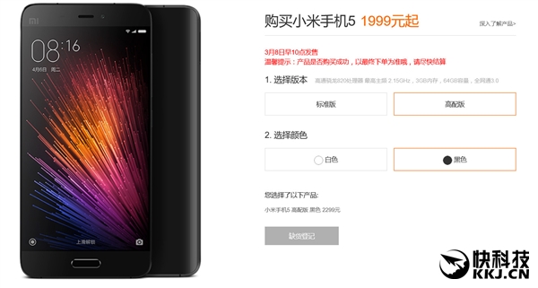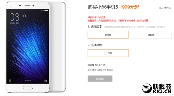 小米5第二轮发售再次闪电售罄:你抢到没?