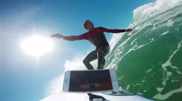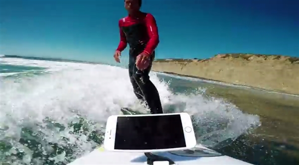 为了进一步验证,网友们尝试了各种极端测试,比如将iPhone 7浸水、浸苏打水以及浸咖啡等等。而现在,专业冲浪者Kai Lenny准备带着iPhone冲浪,来测试iPhone 7和7 Plus的防水性。测试的过程很简单,他将iPhone固定在冲浪板的前端,然后和平时一样冲浪。
