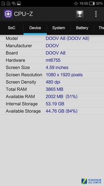 朵唯A8配备联发科MT6750T八核处理器,最高主频1.5GHz。MT6750T采用4个1.5GHz的A53+4个1GHz的A53架构,最高支持4GB LPDDR3内存,相机最高支持1600万像素,1080p@30FPS视频拍摄。GPU方面集成ARM Mali T860,值得一提的是朵唯A8的运行内存达到目前行业领先的4GB,大运存对于程序多开和系统流畅都有着重要的帮助作用。