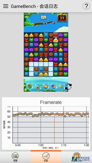 朵唯A8运行游戏“开心消消乐”平均帧数54