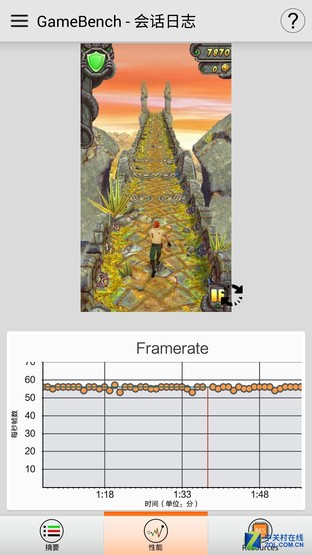 朵唯A8运行游戏“神庙逃亡2”平均帧数55