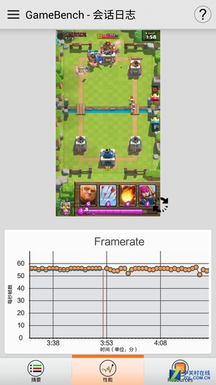 朵唯A8运行游戏“皇室战争”平均帧数52