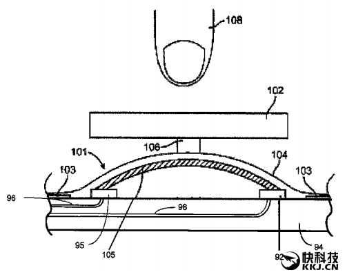 今天这份专利主要描述了液态金属的高延展性使之最适合压力传感Home键按钮,按下时轻微变形,手指离开后立刻返回正常形状。