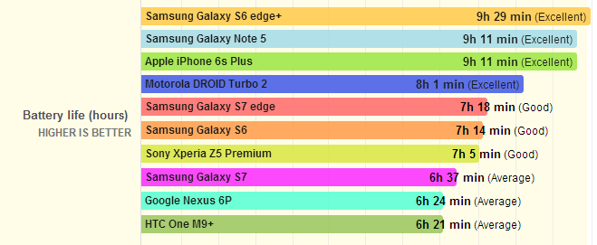 相比之下,S6、S6 Edge分别只有7个多小时、5小时40分钟。