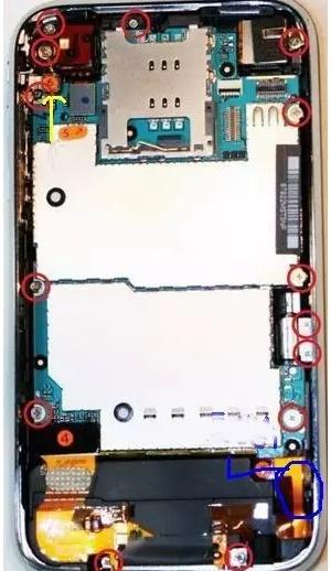 查看iPhone 3GS内部结构图发现,采用FPC设计的天线依靠铜箔辐射信号,其优点是设计上相对简单,生产成本较低,缺点是易收到五金件及装配精度影响,且iPhone 3GS的天线连接出现过不牢固的状况。